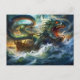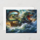 Postal Sea Serpent Attacking Ship in Storm Fantasy Painti