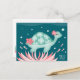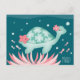 Postal "Sea Turtle Maui" con un ilustracion de tortuga marina y una estrella de mar rodeada de burbujas, peces y flores de hibisco. Simplemente flotando en el océano de Maui, Hawaii.