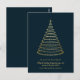 Elegante tarjeta de vacaciones con árbol de Navidad dorado | Saludos de temporada . Comparte el espíritu de las vacaciones con esta elegante tarjeta de Navidades que presenta un brillante árbol de Navidad dorado en un fondo marino. Un diseño atemporal y elegante, perfecto para enviar saludos de temporada a la familia, amigos, vecinos o colegas. Personalice con su nombre o mensaje un toque cálido y festivo que difunda la paz, la alegría y la felicidad en el próximo año.