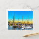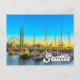 Esta postal de viaje muestra una fotografía de la hermosa ciudad de Seattle, Washington, al atardecer. Esta postal sería un saludo delicioso para los amigos, familiares y compañeros de trabajo.