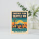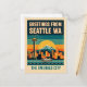 Celebrate the charm and creative spirit of the Pacific Northwest with this vibrant artistic rendering of Seattle, famously known as The Emerald City. Designed in a bold 1930s retro travel poster style, this colorful postcard blends vintage nostalgia with stylish modern graphic design for a truly eye-catching keepsake.