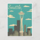 vintage, retro, travel, moderno, acuarela, classic, Washington, Seattle, estados unidos,