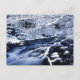 Esta foto es de un arroyo rodeado de árboles y un pincel con nieve congelada cubriendo el suelo y árboles.