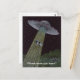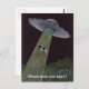 ¡Un dibujo a lápiz de color de una desafortunada vaca secuestrada por extraterrestres en un platillo volador adorna esta divertida postal! Personalizar cambiando el texto para que se adapte a ti mismo!
