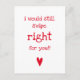 NewParkLane - Tarjeta postal de cita divertida que dice: '¡Te seguiría deslizando hacia la derecha!' en tipografía de escritura roja divertida, y un pequeño corazón rojo.