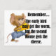 Ratón, queso y humor bonitos sobre el pájaro temprano. El texto dice... El pájaro temprano puede obtener el gusano, pero el segundo ratón recibe el queso.