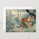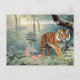 Un tigre hermoso camina por el ilustracion de estilo vintage del bosque.