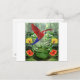 Una postal tropical hermosa de la selva tropical con las flores, las mariposas, el follaje, y un loro rojo del macaw. Reviva esas grandes vacaciones tropicales mientras que ve animales de la selva tropical; cuelgue flojamente.