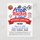 Tarjeta postal de agradecimiento del itinerario PTO Estrella de la Semana de Agradecimiento a los Maestros. En colores rojo, blanco y negro. Imágenes de deportes con una pelota de béisbol, fútbol y baloncesto. Las palomitas de maíz representan uno de los alimentos para picar en la sala de maestros del grupo PTO o PTA. Personalice esto con el Agradecimiento, fecha, gracias, escuela e información. Edítelo aún más para hacer más cambios.