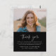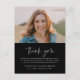 Una sencilla tarjeta de agradecimiento con foto conmemorativa de funeral que incluye agradecimiento con letra manuscrita y tipografía minimalista. Haga clic en el botón de edición para personalizar fácilmente esta plantilla de agradecimiento con sus propios detalles y fotografía de su ser querido.