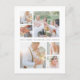 Elegante y moderna foto boda gracias a las postales, cuenta con seis fotos favoritas (2 grandes, 4 pequeñas) con el saludo de su personalizado y/o nombres en el centro. Agregue un mensaje preimpreso de un personalizado de agradecimiento al reverso, o elimine el texto de ejemplo si utiliza un mensaje manuscrito. Ideal para mostrar fotos de detalle de tu boda además de retratos posados.