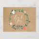 Tarjeta postal de agradecimiento empresarial de guirnalda floral fresca de kraft rústica simple para primavera, con una guirnalda floral de flores de primavera que enmarca un hermoso mensaje de agradecimiento en letra cursiva blanca. Este diseño elegante es ideal para una amplia gama de negocios, incluyendo spas, salones, estilistas de cabello y maquillaje, boutiques, profesionales de la belleza y floristerías.