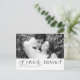 Presentamos nuestra Tarjeta Postal de Agradecimiento de Boda con Texto y Foto Simple y Elegante. Estas tarjetas postales chic y elegantes son la forma perfecta de expresar su gratitud a los invitados después de su boda. Con un diseño limpio y elegante que incluye espacio para una hermosa foto de su día especial y un mensaje de agradecimiento sincero, estas tarjetas postales combinan simplicidad y sofisticación. Elaboradas con materiales de alta calidad, garantizan durabilidad y un acabado pulido.