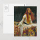 Pintura de arte fino y vintage de la Señora de Shalott (1888) sobre el agua en un barco ornamentado. Señora de Shalott vestida con un vestido blanco completo. Arte del artista inglés John William Waterhouse.