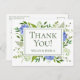 Esta hermosa postal de agradecimiento con hortensias azules y follaje en la parte delantera y una hermosa nota personal con tipo en la parte trasera harán que enviar notas de agradecimiento sea mucho más fácil. Basta con agradecer a todos los clientes en las duchas y a su boda.