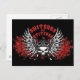 Calavera de acero inoxidable con alas rectas de afeitar, casco y gafas de cuero, "Snitches Get Stitches" con letras góticas y fondo de salpicadura roja. Camisetas y franja de regalo.