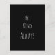 Postal Be Kind Always Black con tipografía gris Afirmaciones positivas