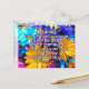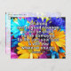 Sean fuertes y valientes; no temáis ni os desmayéis, porque Jehovah vuestro Dios está contigo a donde vayas. Joshua 1:9 flor de Bonito femenina, ramo de flores floridas y coloridas margaritas en el fondo. Un gran mensaje de aliento para la protección durante los viajes, fuerza y pensamiento positivo.