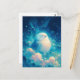 Postal Serene White Owl Napping in Blue Clouds