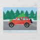 Postal Setter irlandés conduciendo un auto con un árbol e