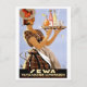 Poster publicitario vintage restaurado y mejorado digitalmente, que muestra a una camarera llevando una bandeja con botellas y gafas. Se han eliminado las inperfecciones. Colores corregidos. Imagen cortesía de la Biblioteca del Congreso.