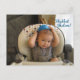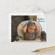 ¡Cute bebé judío ha hecho su propio yarmulke con un tazón azul! Tarjeta respetable para Shabbat.