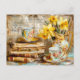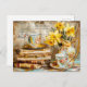 Postal Shabby chic Daffodils on a Stacked antique Books