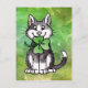 Un gato blanco y negro sostiene en su boca un shamrock de tres hojas, para el Día de San Patricio, ¡o solamente por diversión!