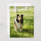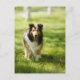 Postal Sheepdog de Shetland corriendo sobre la hierba