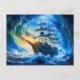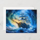 Postal Ship in Glowing Blue Ocean Fantasy Painting