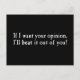 Estas graciosas camisetas y otros artículos llevan el dicho "Si quiero tu opinión te la venceré".