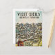 Dibujo simulando el viejo poster turístico con la imagen de la ciudad de Sicilia - Italia.