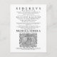 En 1610, Galileo publicó Sidereus Nuncius. Fue el primer libro de observaciones del cielo nocturno a través de un telescopio. Esta postal muestra la página del título del libro.