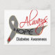 Vea todos nuestros diseños exclusivos de concientización sobre la diabetes TODOS LOS QUE SE MUESTRAN EN UNA PÁGINA visitando la Sección de Diabetes de nuestra Tienda Zazzle, Cuando se trata de una cura para la diabetes, siempre debemos esperar. Expresar este sentimiento inspirador a los que están a su alrededor mientras compartimos el importante mensaje de la conciencia sobre la diabetes con camisetas, ropa, botones y regalos de Always Hope con texto fantasioso y una impresionante cinta gris de concientización sobre la diabetes bordeada de 'oro'. Como sobrevivientes del cáncer, cónyuges y ávidos defensores de la conciencia, nos complace contribuir a numerosas organizaciones de investigación médica, así como a los esfuerzos de rescate de animales y de Salvar a Darfur y pedir que nos piensen primero por todas sus necesidades de concienciación y apoyo en materia de diabetes.