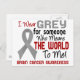 Vea todos nuestros diseños exclusivos de concientización sobre el cáncer de cerebro TODOS LOS QUE SE MUESTRAN EN UNA PÁGINA visitando la Sección de Cáncer de Cerebro de nuestra Tienda Zazzle, Su ser querido que lucha contra el cáncer de cerebro es extraordinario. Ponte tu gris para apoyar este pilar de fuerza con nuestro uso de gris para alguien que significa el cáncer de cerebro del mundo para mí apoya camisetas, ropa, regalos y mercadería con tipos de texto contrastantes y una impresionante cinta de sensibilización sobre el cáncer de cerebro gris. Este llamativo diseño de Cáncer de Cerebro es seguro que va a girar la cabeza en su dirección mientras declara su apoyo a su ser querido y comparte el muy importante mensaje de la conciencia del Cáncer de Cerebro. Como sobrevivientes del cáncer, cónyuges y ávidos defensores de la conciencia, estamos encantados de contribuir a numerosas organizaciones de investigación médica, así como a los esfuerzos de rescate de animales y de Salvar a Darfur, y los invitamos a que piensen primero en nosotros para todas sus necesidades de concientización y apoyo sobre el cáncer de cerebro.