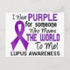 Tu ser querido que lucha contra Lupus es extraordinario. Ponte tu morado para apoyar este pilar de fuerza con nuestro "Yo uso púrpura para alguien que significa "El mundo para mí" lupus apoyo camisetas, ropa, regalos y mercadería con fuentes de texto contrastantes y una impresionante cinta de sensibilización sobre el lupus púrpura. Este llamativo diseño de Lupus seguro que va a girar la cabeza en su dirección mientras declara su apoyo a su ser querido y comparte el muy importante mensaje de la conciencia de Lupus.