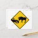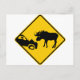 Señal internacional de carreteras y autopistas que aconseja que el alce gane cualquier confrontación con un auto. Se informó de Rótulos en el Parque Nacional Gros Morne, Terranova, Canadá.