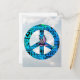 Un cartel de paz flota sobre un fondo de cielo azul y nubes blancas onduladas. El signo de la paz está diseñado con tonos azules y verdes claros. Las palabras en el cartel de paz nos recuerdan que practicamos la tolerancia, el optimismo, el amor, la empatía, el respeto, la esperanza, la bondad y la armonía. En el centro del símbolo de la paz se encuentra una paloma negra de corte que resalta los tonos violeta y rosa. La parte trasera de la tarjeta postal dice: Saludos a un Año Nuevo y otra oportunidad para que lo hagamos bien. ¡Feliz 2021!
