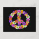 Un símbolo de paz floral en tonos rosa, amarillo, naranja, violeta, verde, blanco y negro.