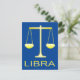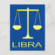 Esta increíble postal presenta una imagen de arte digital de un par de balanzas doradas con la palabra Libra debajo en texto dorado. Un diseño divertido para personas que celebran un cumpleaños entre el 23 de septiembre y el 22 de octubre bajo el signo zodiacal de Libra.