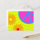 Postal Signo y flores hippie de paz de los años 70