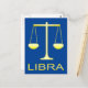 Esta increíble postal presenta una imagen de arte digital de un par de balanzas doradas con la palabra Libra debajo en texto dorado. Un diseño divertido para personas que celebran un cumpleaños entre el 23 de septiembre y el 22 de octubre bajo el signo zodiacal de Libra.