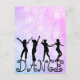 Bailarines de silueta bailando sobre la palabra bailan sobre un fondo de bokeh rosa/azul.