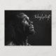 Fotografía en blanco y negro de la cara de un hombre negro iluminada en una silueta tomada en un estudio oscuro. Elaborado con algoritmos generativos y Photoshop.