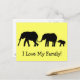Silhouette de la familia de los elefantes sosteniendo las colas, caminando juntos. Imagen alegre y cálida. Con la frase "amo a mi familia" (se puede personalizar). Para los amantes de los animales y la familia :)