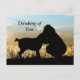 Una silueta de un perro y una mujer es creada por la puesta de sol detrás de ellos. El dueño del perro y el perro están juntos mostrando sus emociones entre ellos. Usa esta tarjeta con un regalo de simpatía para el perro o honra al perro tu amor. Un regalo para el propietario de un mascota, un regalo para un amante de las mascotas, un regalo de memoria del mascota o la pérdida de un regalo de mascota.