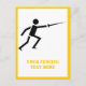 Esgrima de silueta negra esgrimista personalizado de diseño de postal vertical muestra un ícono de pictograma minimalista de una silueta negra de un esgrimista sosteniendo su espada y su texto sobre fondo blanco con borde amarillo. Este diseño fresco y moderno es una plantilla y es completamente personalizable. Personalízalo y cambia el texto con el monograma, nombre o mensaje. El regalo perfecto para el atleta de esgrima o amante de tu vida. Ver muchos diseños en nuestra tienda de regalos deportivos.