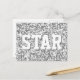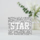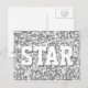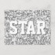 Postcard con un diseño moderno con estrellas diseminadas sobre un estilizado fondo de patrón "secuin look" y "STAR" en tonos gris plateado. Se puede usar como fondo para tu propio texto, imágenes e ideas. Tenga en cuenta que se trata de una imagen de arte digital impresa, que no brilla ni contiene purpurinas o secuencias reales.