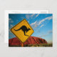 Cartel canguro frente a Uluru (Roca Ayers) temprano en la mañana cuando el sol lo pone rojo brillante.