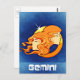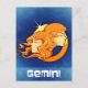 El signo de gemini zodiac es el símbolo para las personas nacidas entre el 21 de mayo y el 20 de junio. Un ilustracion fresco de los mellizos clásicos que es el signo de gemini en astrología griega. Fondo azul oscuro.